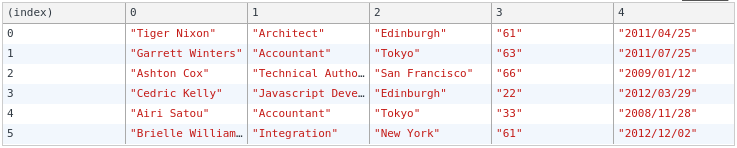 ["Ashton Cox", "Technical Author", "San Francisco", "66", "2009/01/12"],