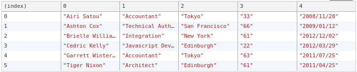 ["Airi Satou", "Accountant", "Tokyo", "33", "2008/11/28"],